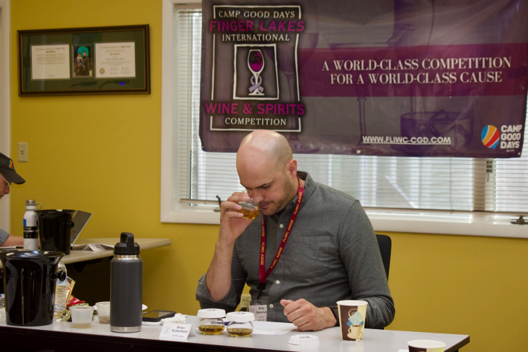 FLIWC Judge Brian Butterfield evaluates a spirits entry during the 24th Annual Finger Lakes International Wine & Spirits Competition.