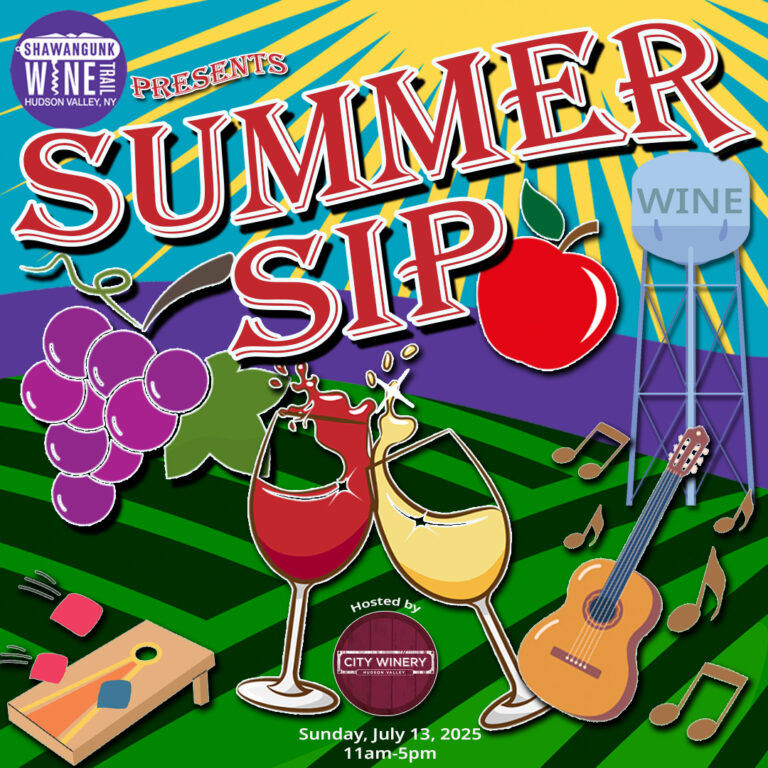 Summer is heating up and so is the Hudson Valley’s wine and cider scene! Join the Shawangunk Wine Trail for its brand-new tasting event, Summer Sip, happening Sunday, July 13, 2025, from 11 AM to 5 PM at City Winery Hudson Valley, 23 Factory Street, Montgomery, NY. This is not your average Sunday. It’s a full-on celebration of local wine, hard cider, live music, food and laid-back summer vibes! What to Expect: