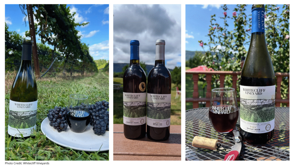 “While the most full-bodied wines, like Cabernet Sauvignon, tend to need a longer growing season than we have here, we can confidently ripen varietals like Gamay Noir, Pinot Noir, and Cabernet Franc,” she says.